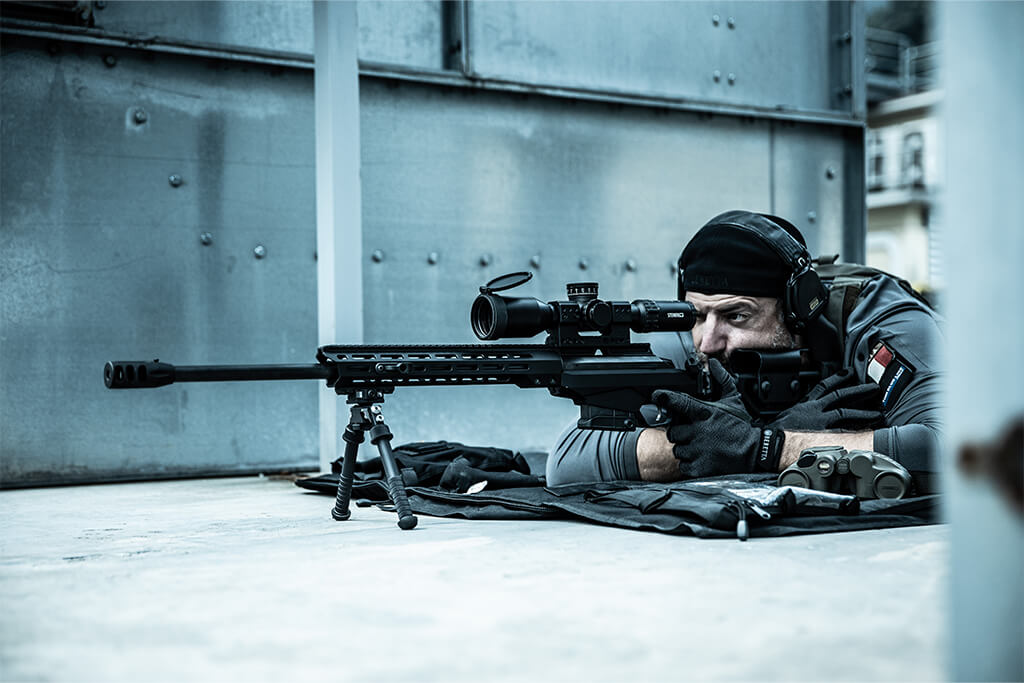 The Tikka T3 TACT A1 bolt – action offers incredible accuracy in a compact package, ideal for urban sniper missions with a variable Steiner M7Xi 2.9-20×50 scope and a DBAL-A3 aiming laser. The proposed Weapon system is integrated with Swiss P Tactical rounds, unconventional bullet designed and developed to accurately hit targets behind an angled window or wind shield without the risk of unpredictable bullet deflection