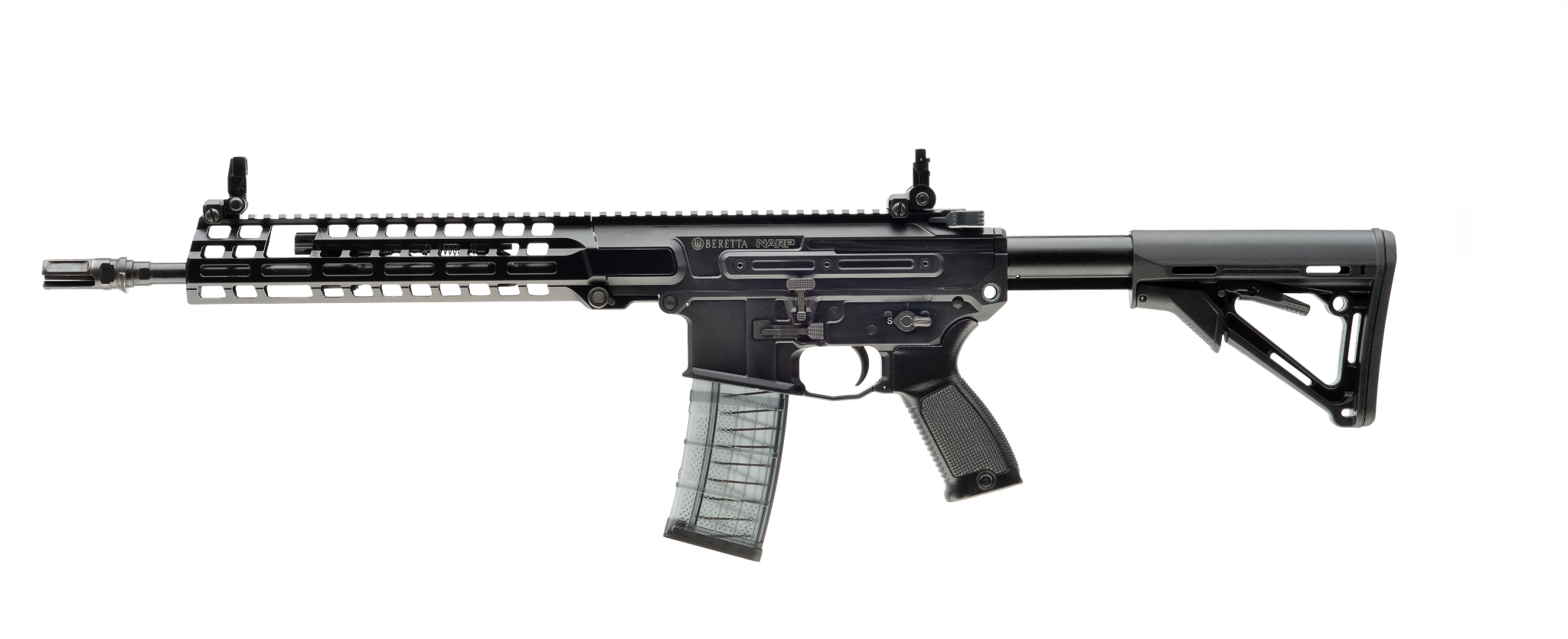NARP is a unique and modern platform, with ergonomics close to AR platforms but embodying battle proven action designed by Beretta, which pushes the boundaries of products performance. Thanks to its reduced weight of 3.3 kg (including empty magazine) and a total length under 90 cm, NARP fits any operator offering fully ambidextrous controls, a set of telescopic, foldable and collapsible stocks, and